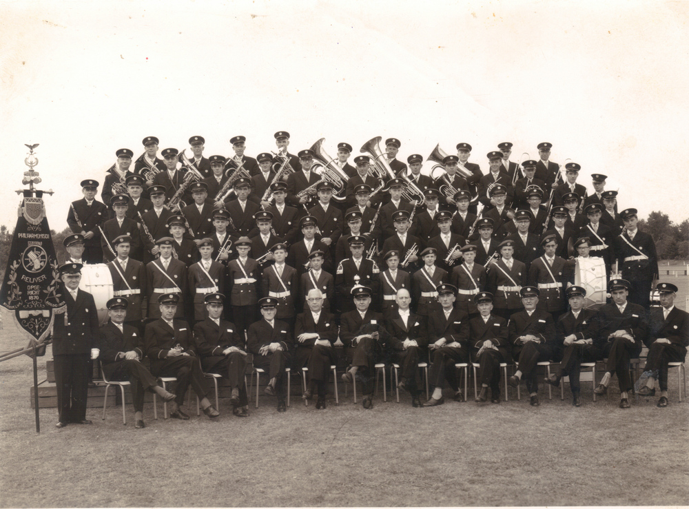 Fluiterkorps Offenbeek Har Knops Baér Theunissen Dirigent v Dijk en Jan Denessen Fluiterkorps Kerkrade Fotogroep Reuver Franssen Wiel Franssen-Sanders 100ste verjaardag Franssen Keun en Marie v/d Velden Franssen Baer en Mien Reinders Franssen-Reinders koets
