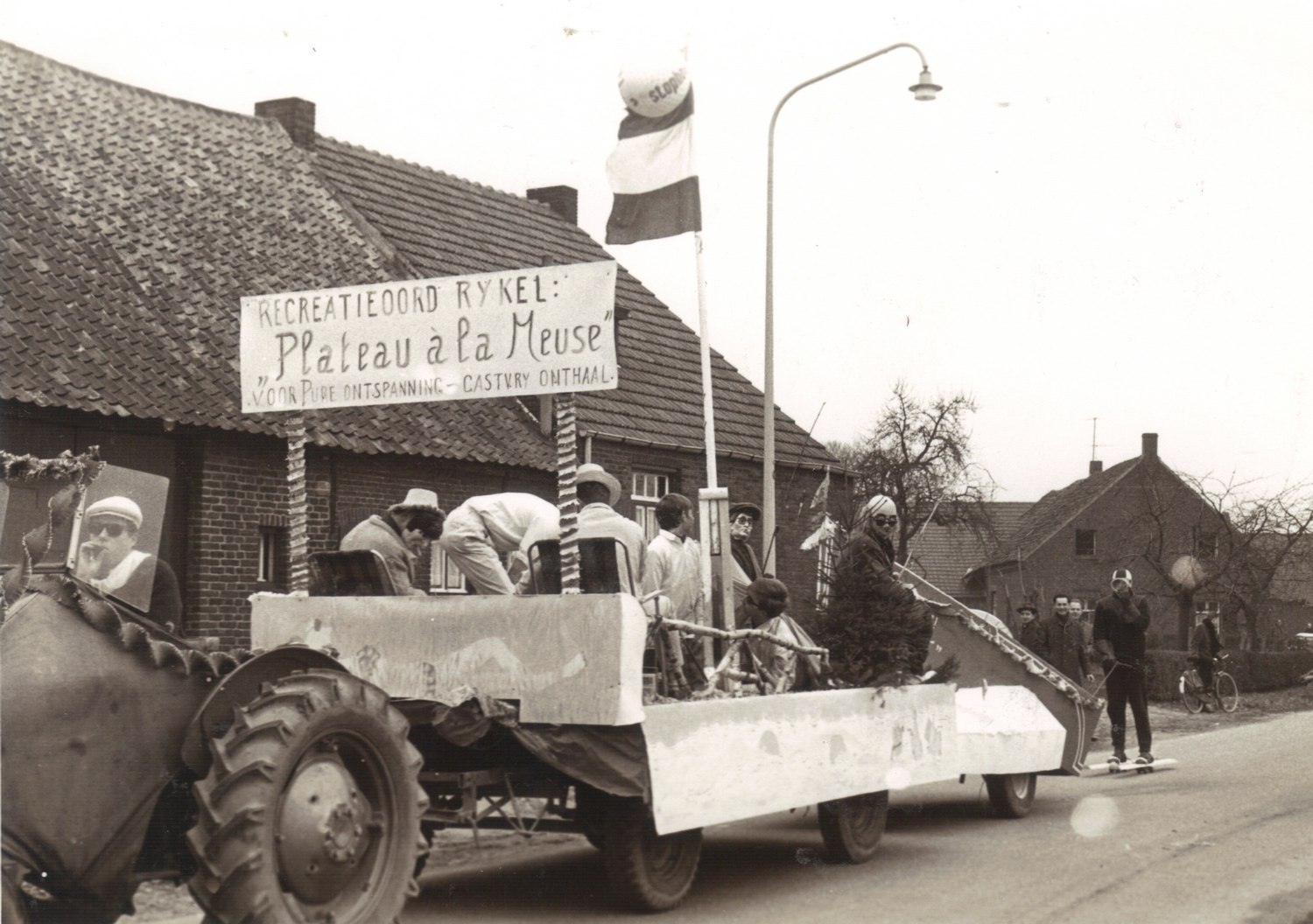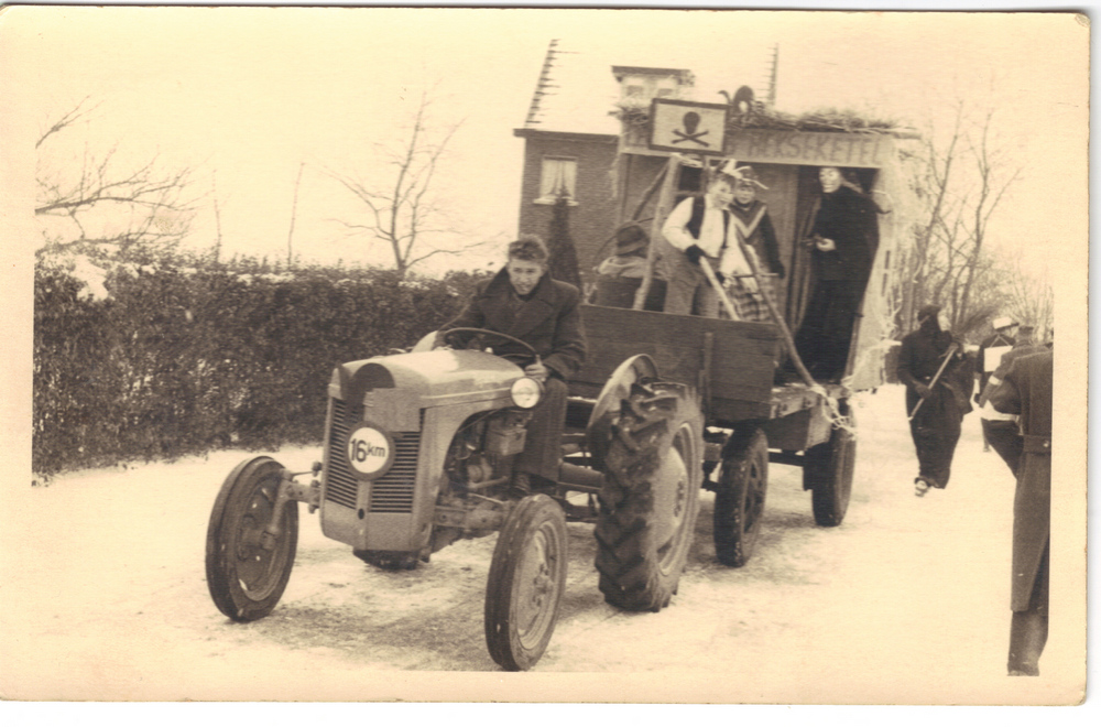 Carnaval 1954 Sjra Martens Carnaval Sjra Martens, Dre Janssen en Hugo Steeghs Carnaval zaal Paar Har Blomen, Anny Dagniaux en Hay Smeets Carnaval café de Sport Carnaval school Beesel Carnavals wagen Beesel 50-er jaren Carnaval Cafe's